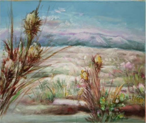 La malinconia dei suoi colori, l'incanto dei tramonti, i fiori delicati, i volti femminili sofferti sono gli elementi sempre più godibili all'apparenza, ma anche più inquietanti e problematici. |